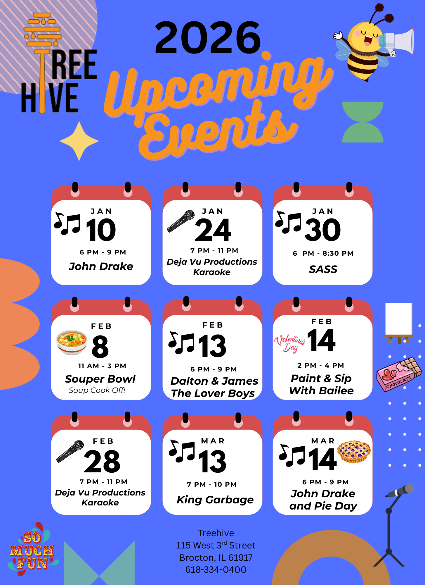 Or by appointment along with private events available through the week